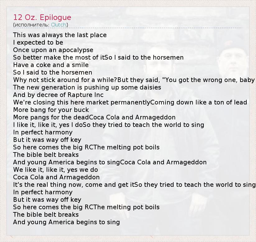 А как ты думаешь, о чем песня "12 Oz. Epilogue" ?
