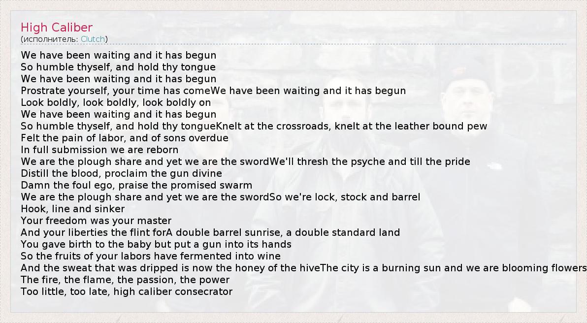 Это интересно:В силу разных причин, группу Clutch знает довольно небольшой круг людей. Хотя эта группа заслуживает внимания и во всем мире считается легендой стоунер-рока. Да и сам стоунер-рок и группы, играющие в этом стиле, не очень известны российской аудитории (за исключением мейнстримовых Queens of the Stone Age и Monster Magnet). Clutch сочетают в своем творчестве элементы... продолжение