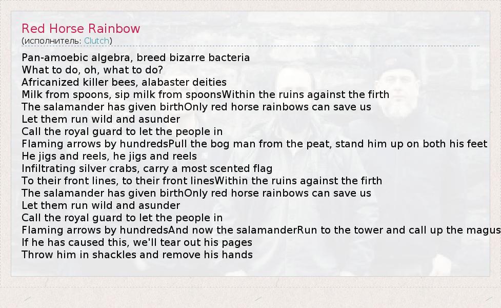А как ты думаешь, о чем песня "Red Horse Rainbow" ?