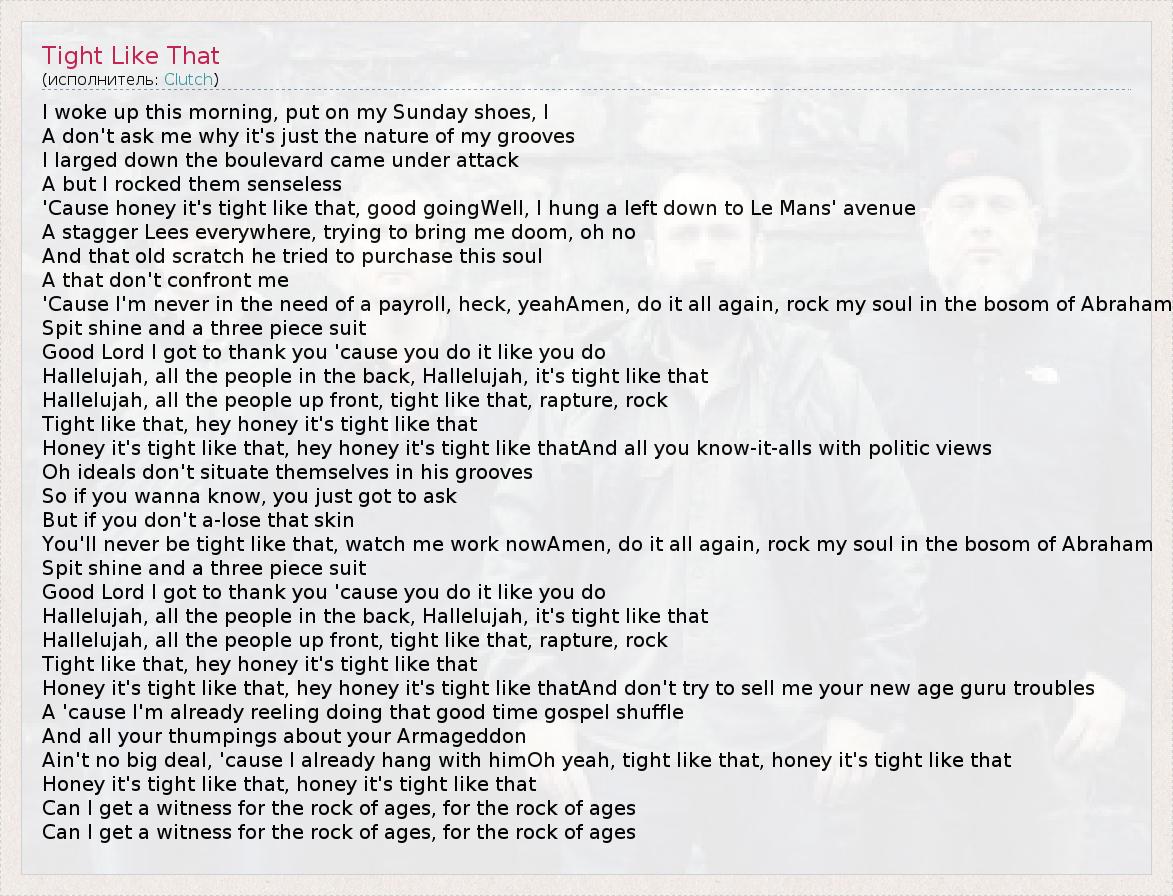 You'll never be tight like that, watch me work nowAmen, do it all again, rock my soul in the bosom of Abraham