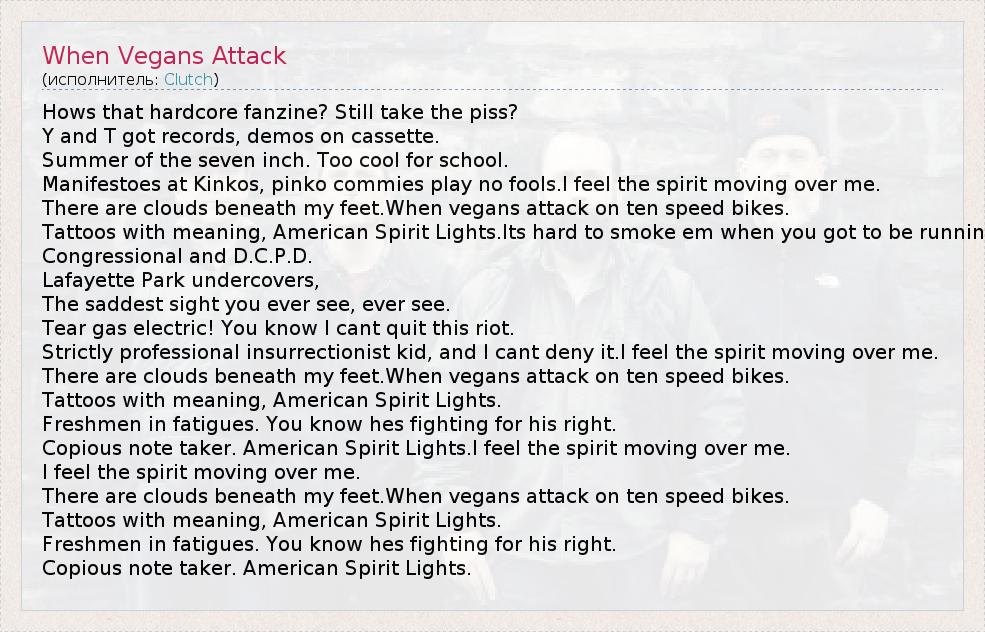 А как ты думаешь, о чем песня "When Vegans Attack" ?