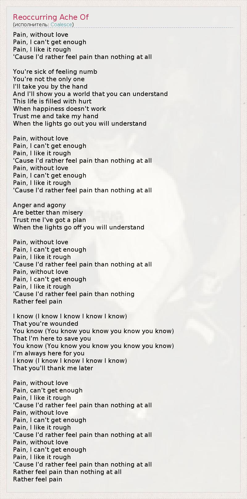 А как ты думаешь, о чем песня "Reoccurring Ache Of" ?