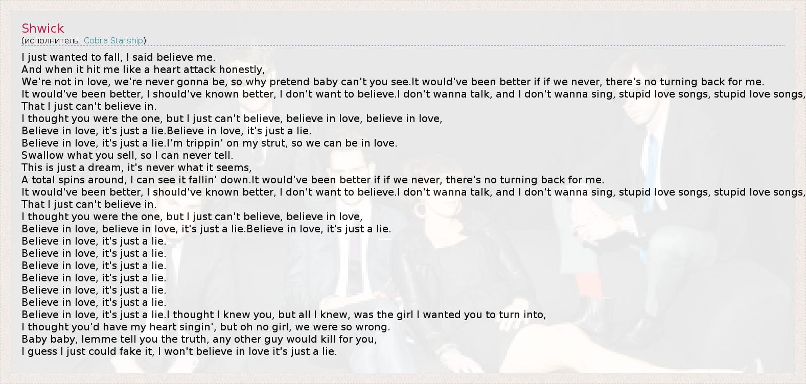 Believe in love, believe in love, it's just a lie.Believe in love, it's just a lie.