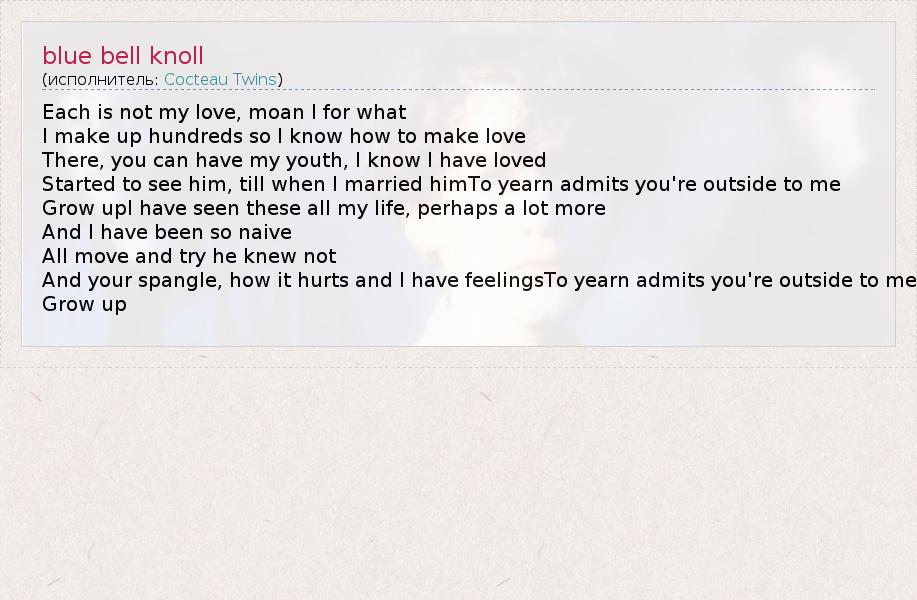 А как ты думаешь, о чем песня "blue bell knoll" ?