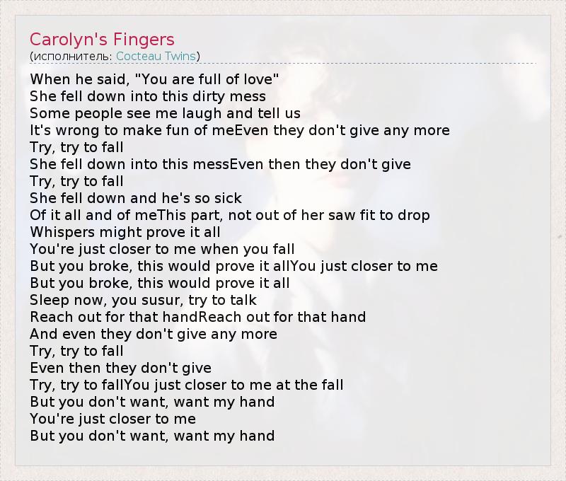 А как ты думаешь, о чем песня "Carolyn's Fingers" ?