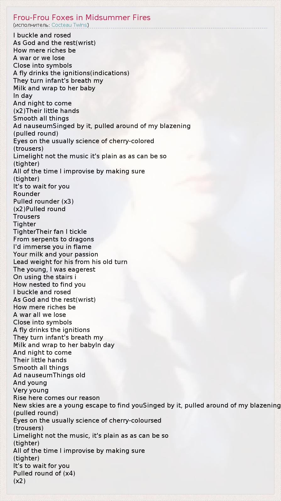А как ты думаешь, о чем песня "Frou-Frou Foxes in Midsummer Fires" ?