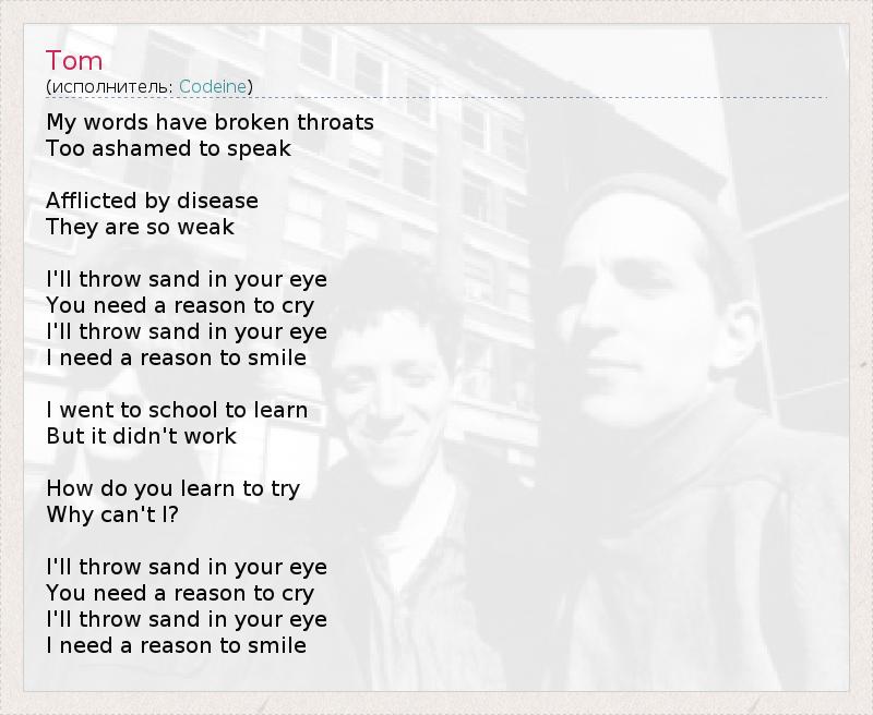 Это интересно:Codeine is an American indie rock/slowcore band formed in 1989 by members Stephen Immerwahr (vocal, bass), Chris Brokaw (drums), and John Engle (guitar). Codeine pioneered the slowcore and sadcore subgenres of indie rock, but with a more experimental attitude than other bands in the genre, such as Low, Idaho and Red House Painters. The band's original tone, marked by slow tempos, Immerwahr's nasal vocals, and Engle's ringing Telecaster, did not evolve much during their career.Codeine released their first album "Frigid Stars" on the German label Glitterhouse in 1990. The album was released on Sub Pop the following year.Their second release, the short album "Barely... продолжение