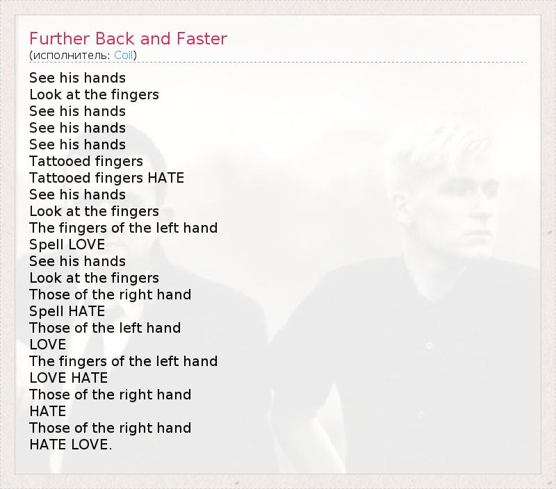 А как ты думаешь, о чем песня "Further Back and Faster" ?