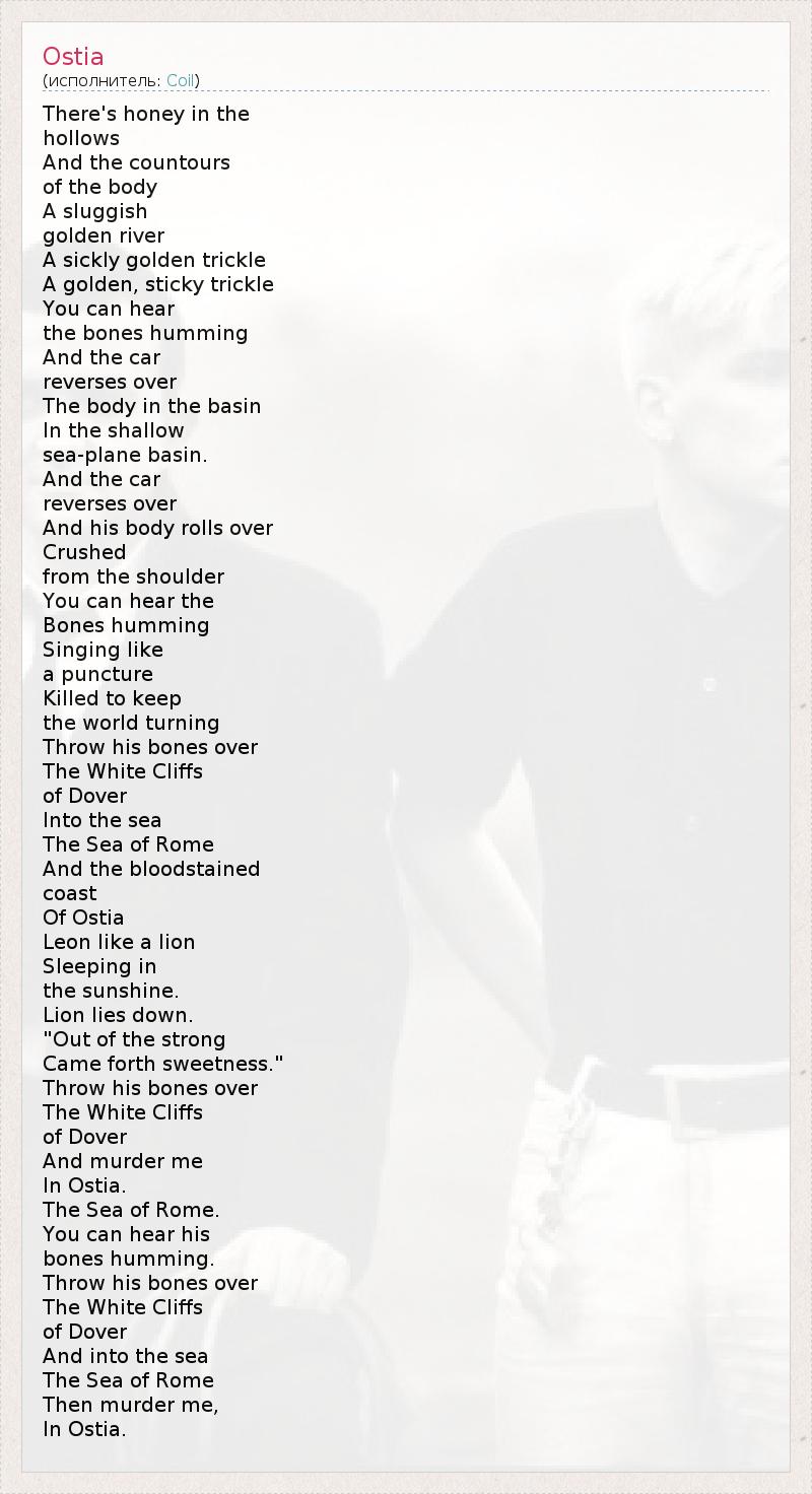 Это интересно:Coil — экспериментальная британская музыкальная группа, основанная участниками проекта Psychic TV Джоном Бэлансом и Питером Кристоферсоном в 1982 году. Прекратила своё существование в связи с трагической гибелью Бэланса 13 ноября 2004 года. Считается одним из самых известных и влиятельных индустриальных коллективов в истории музыки.История Coil — это история творческого союза Джона Бэланса... продолжение