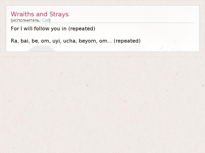 А как ты думаешь, о чем песня "Wraiths and Strays" ?