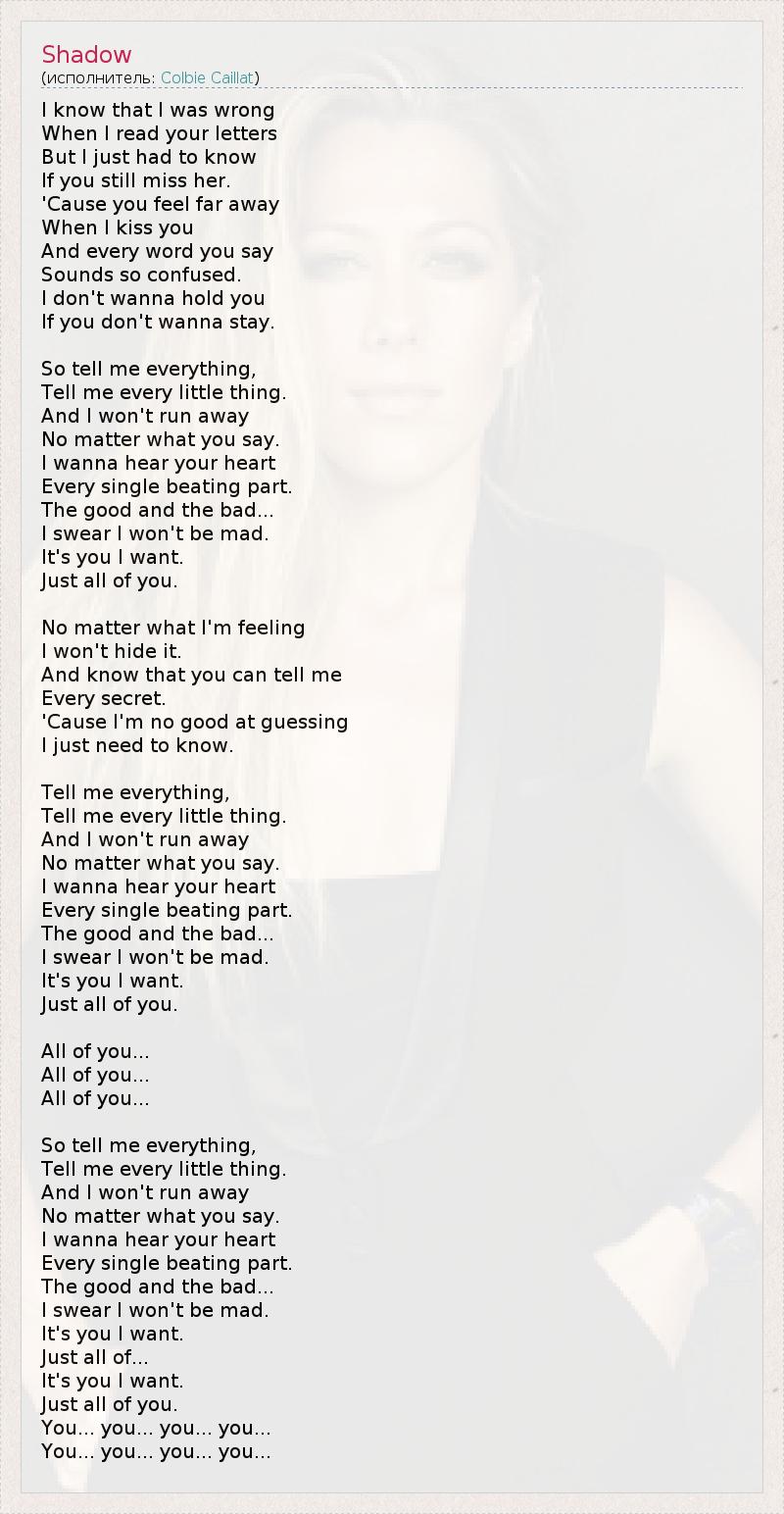 Так что расскажи мне все,
