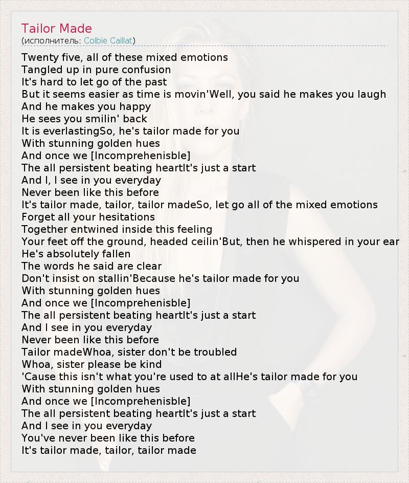 It's tailor made, tailor, tailor madeSo, let go all of the mixed emotions