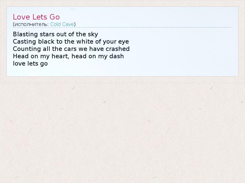 А как ты думаешь, о чем песня "Love Lets Go" ?