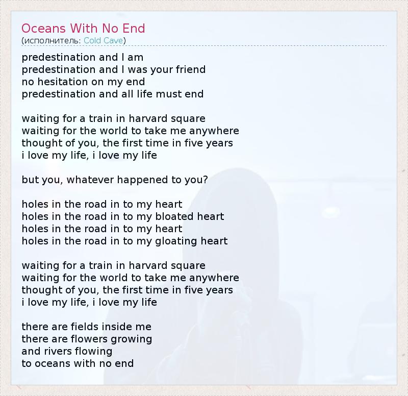А как ты думаешь, о чем песня "Oceans With No End" ?