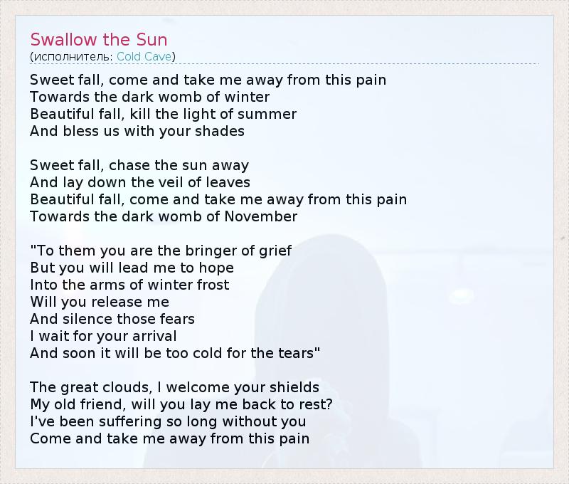 А как ты думаешь, о чем песня "Swallow the Sun" ?