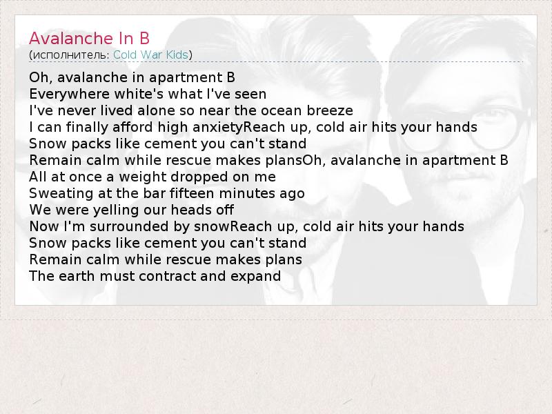 А как ты думаешь, о чем песня "Avalanche In B" ?