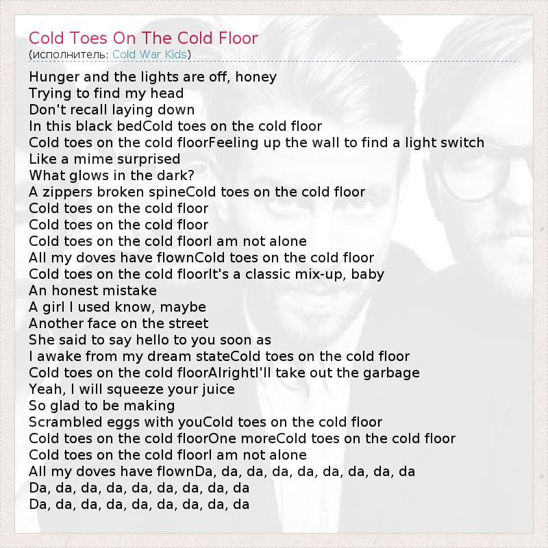 А как ты думаешь, о чем песня "Cold Toes On The Cold Floor" ?
