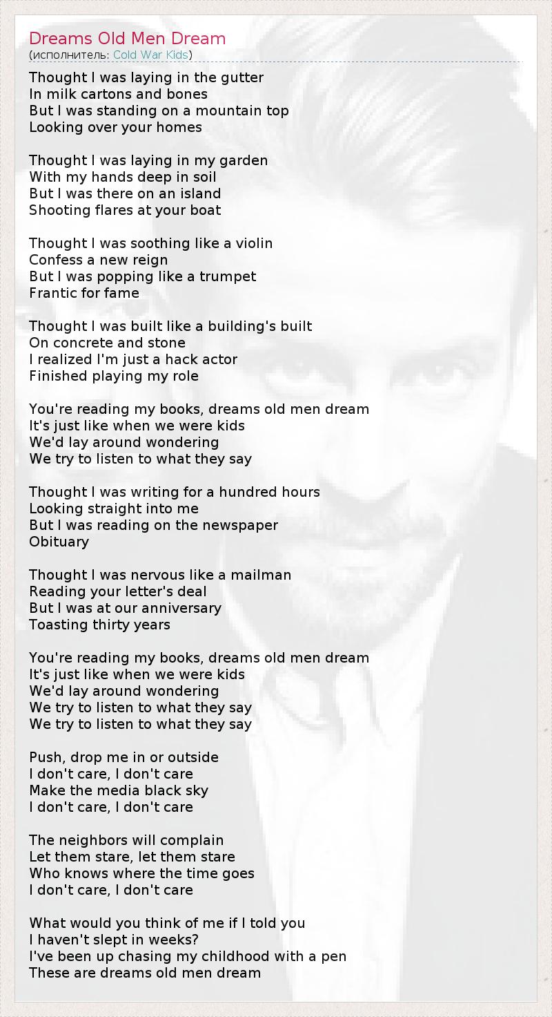 А как ты думаешь, о чем песня "Dreams Old Men Dream" ?