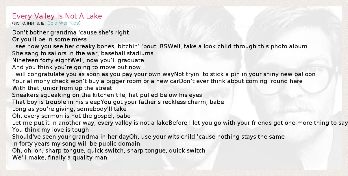 ГлавнаяИсполнителиCold War KidsEvery Valley Is Not A Lake