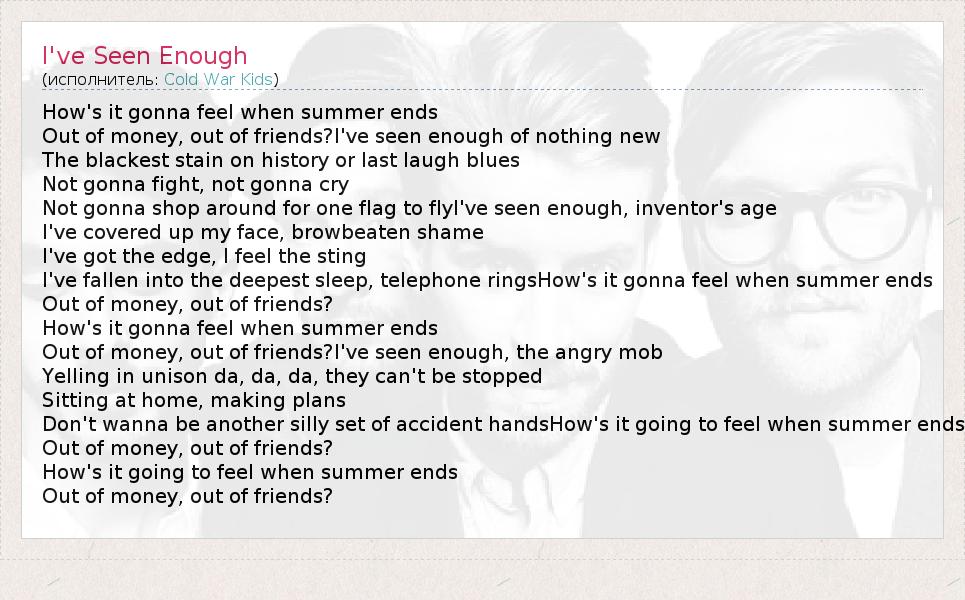 А как ты думаешь, о чем песня "I've Seen Enough" ?