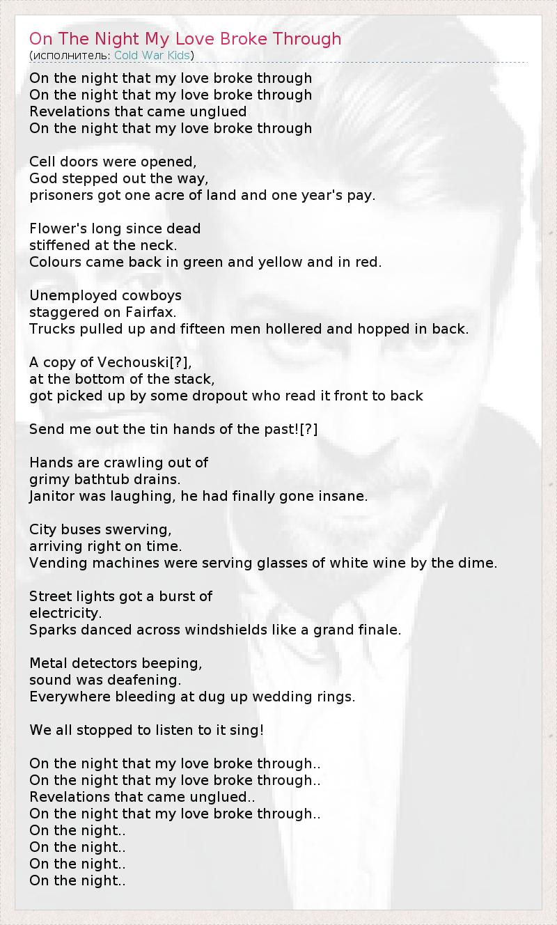 ГлавнаяИсполнителиCold War KidsOn The Night My Love Broke Through
