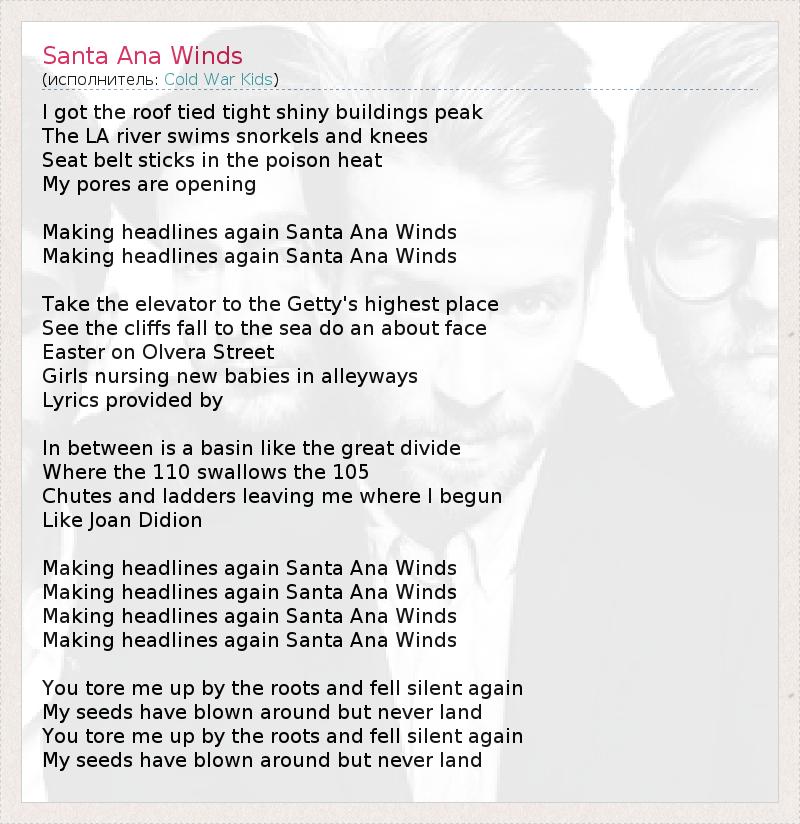 А как ты думаешь, о чем песня "Santa Ana Winds" ?