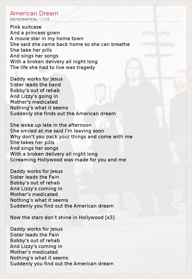 А как ты думаешь, о чем песня "American Dream" ?