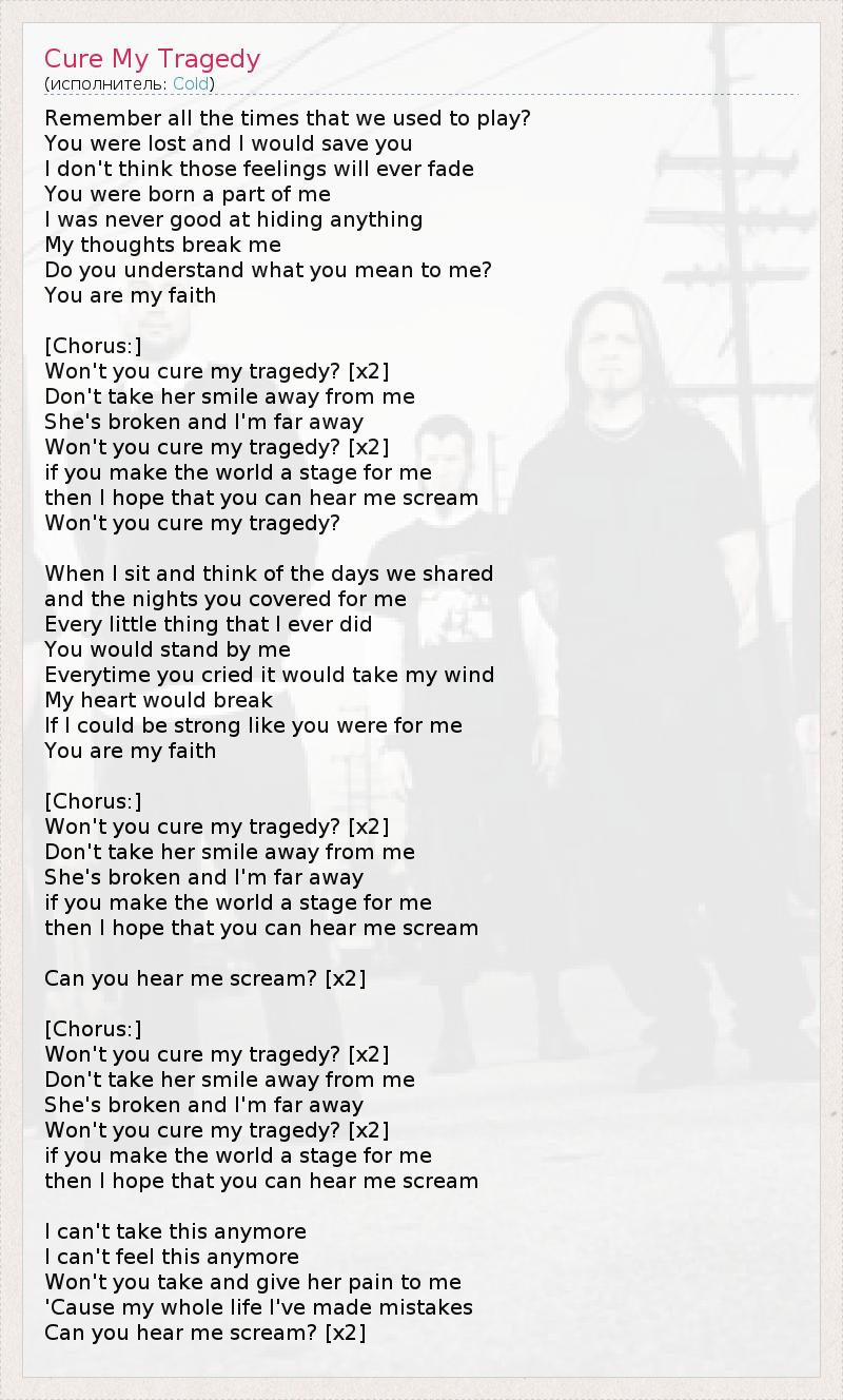 Won't you cure my tragedy? [x2]
