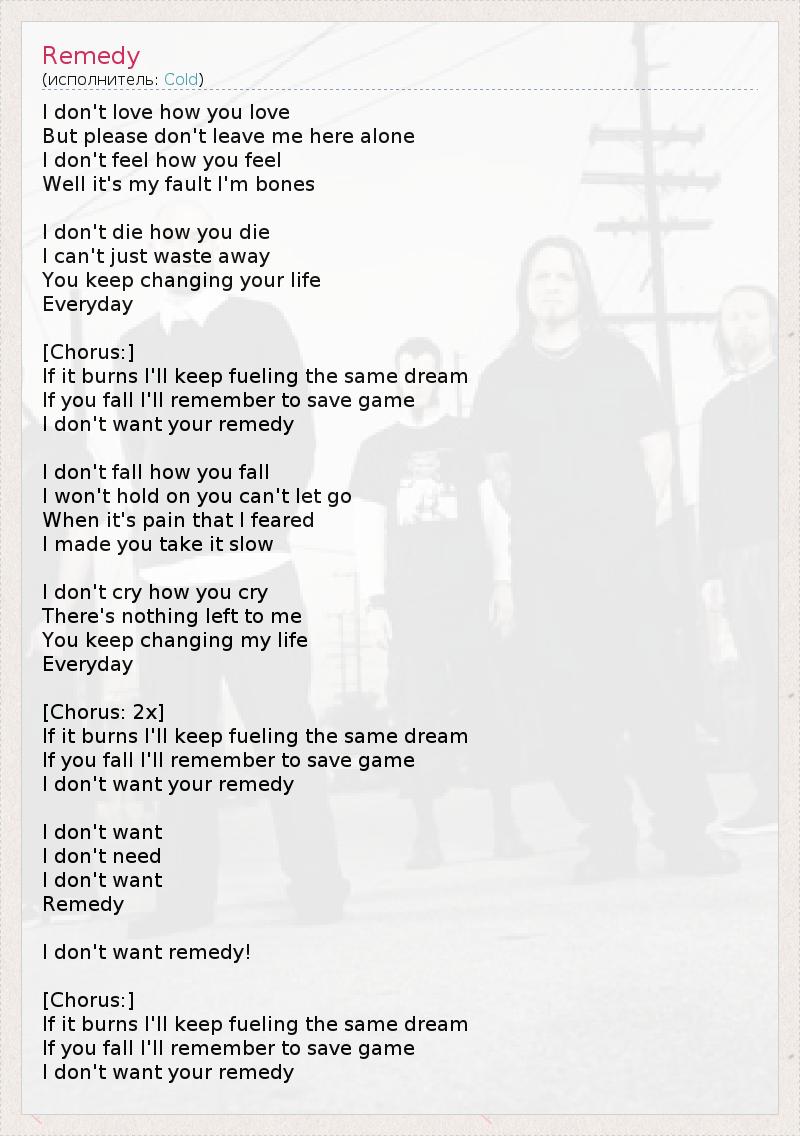 А как ты думаешь, о чем песня "Remedy" ?