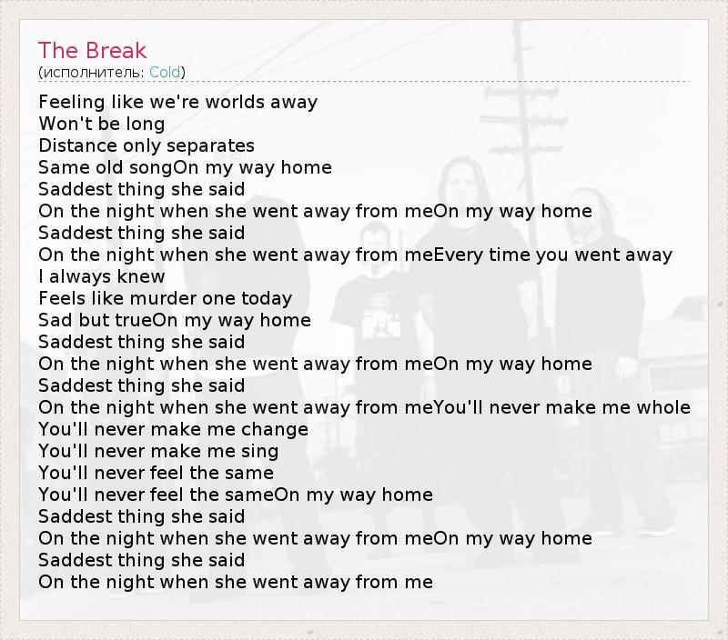А как ты думаешь, о чем песня "The Break" ?