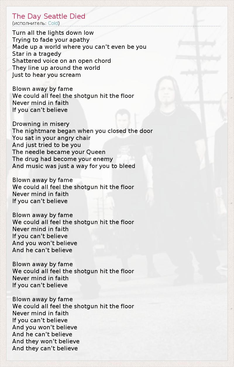 ГлавнаяИсполнителиColdThe Day Seattle Died