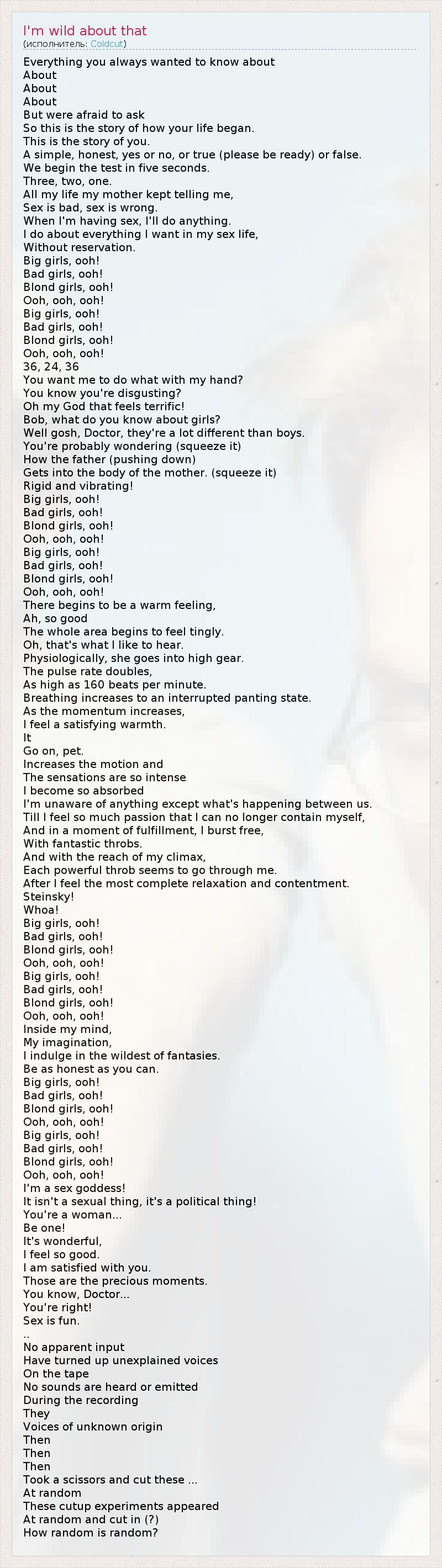 А как ты думаешь, о чем песня "I'm wild about that" ?