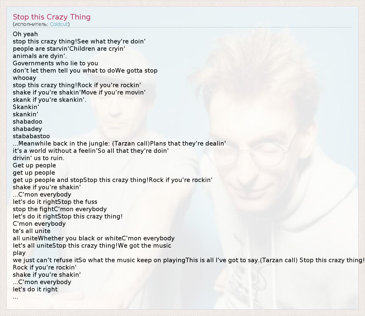 А как ты думаешь, о чем песня "Stop this Crazy Thing" ?