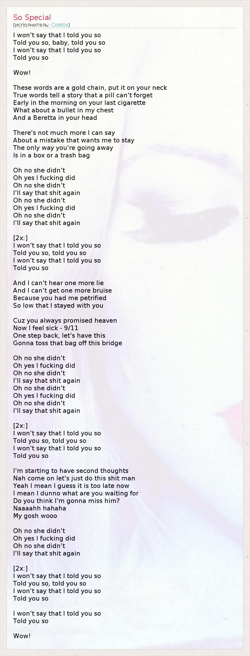 Это интересно:Изумительная Colette Marino или просто Colette стала одним из первых ди-джеев успешно скрестивших собственные вокальные возможности с музыкой, которую она играет — её сеты это абсолютно новый формат клубного выступления. И хотя в наши дни многие маги винила начинают петь и даже танцевать во время собственных сетов, мало кто сможет сравниться с тем изяществом и гармонией, которые доступны только... продолжение