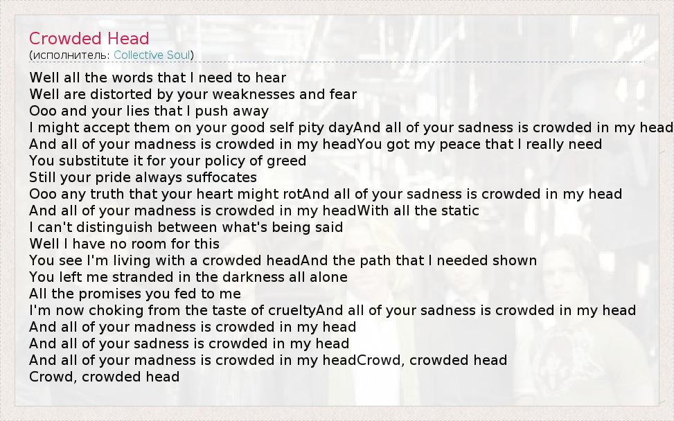 А как ты думаешь, о чем песня "Crowded Head" ?
