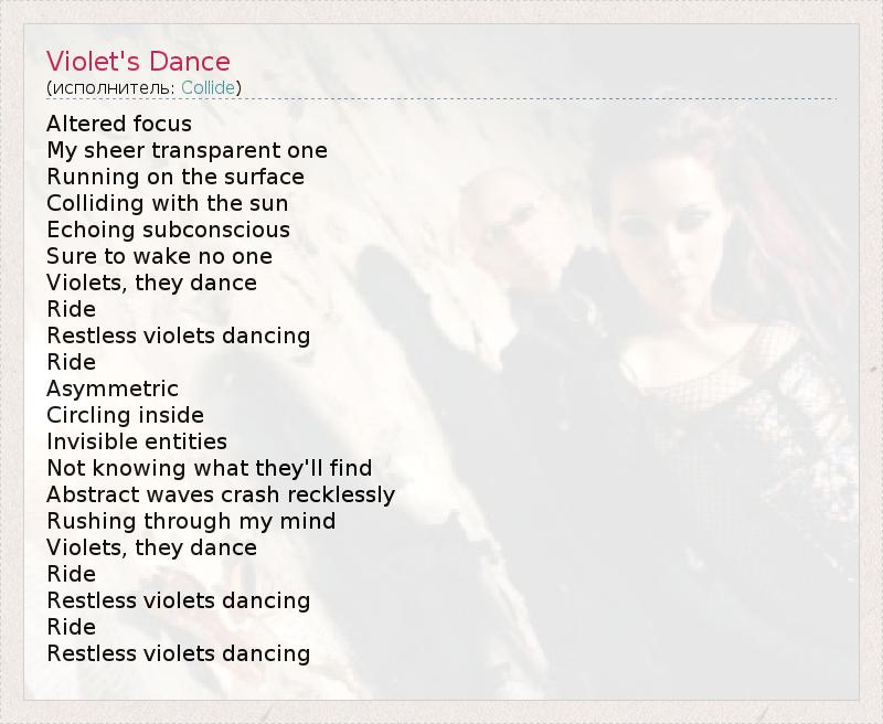 А как ты думаешь, о чем песня "Violet's Dance" ?
