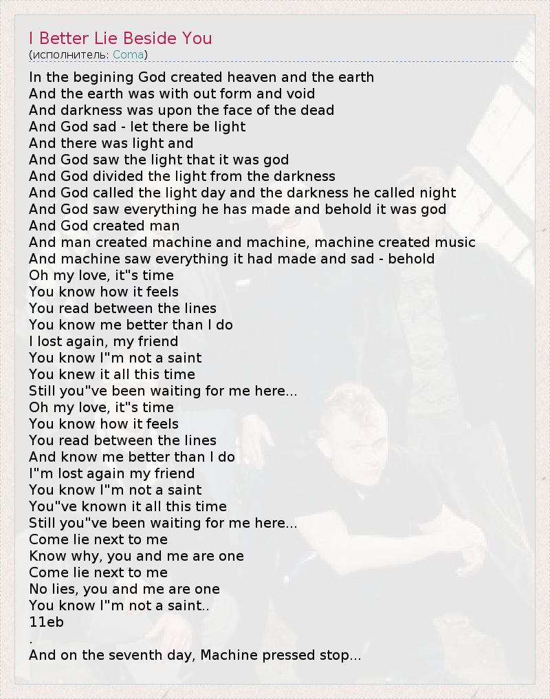 ГлавнаяИсполнителиComaI Better Lie Beside You