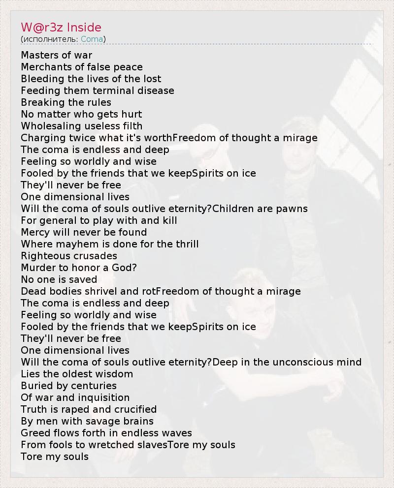 А как ты думаешь, о чем песня "W@r3z Inside" ?