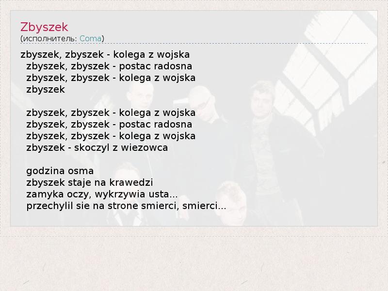 А как ты думаешь, о чем песня "Zbyszek" ?