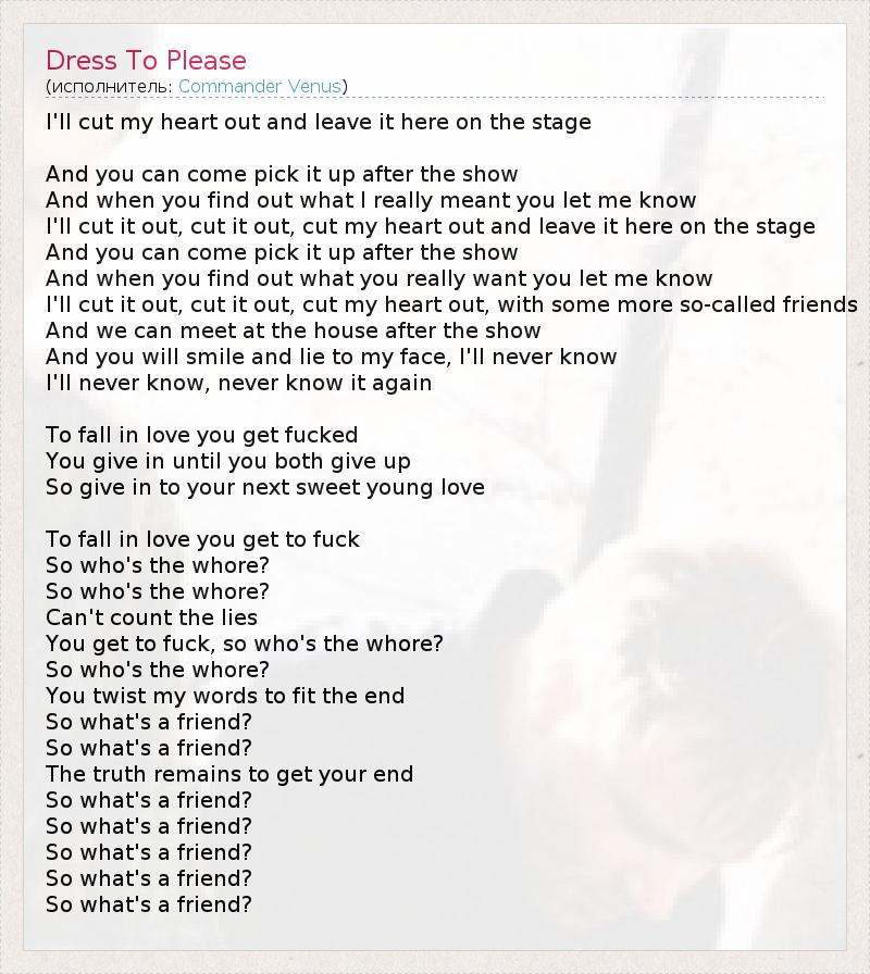 А как ты думаешь, о чем песня "Dress To Please" ?