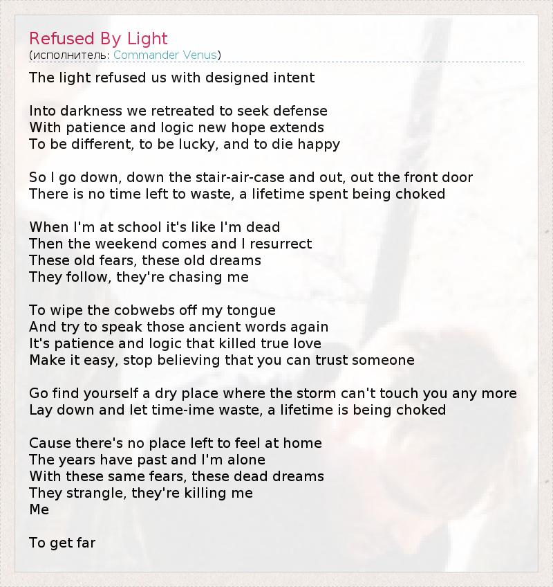 А как ты думаешь, о чем песня "Refused By Light" ?