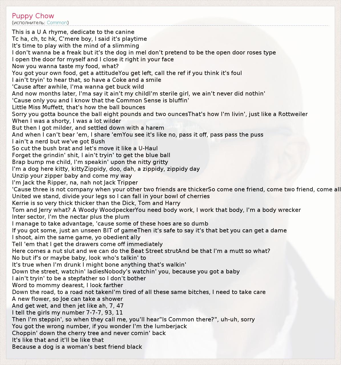 А как ты думаешь, о чем песня "Puppy Chow" ?