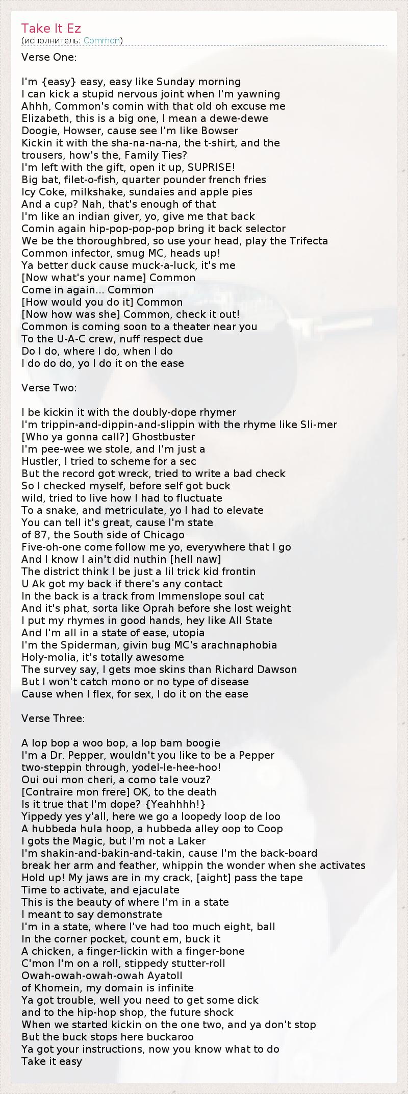 А как ты думаешь, о чем песня "Take It Ez" ?