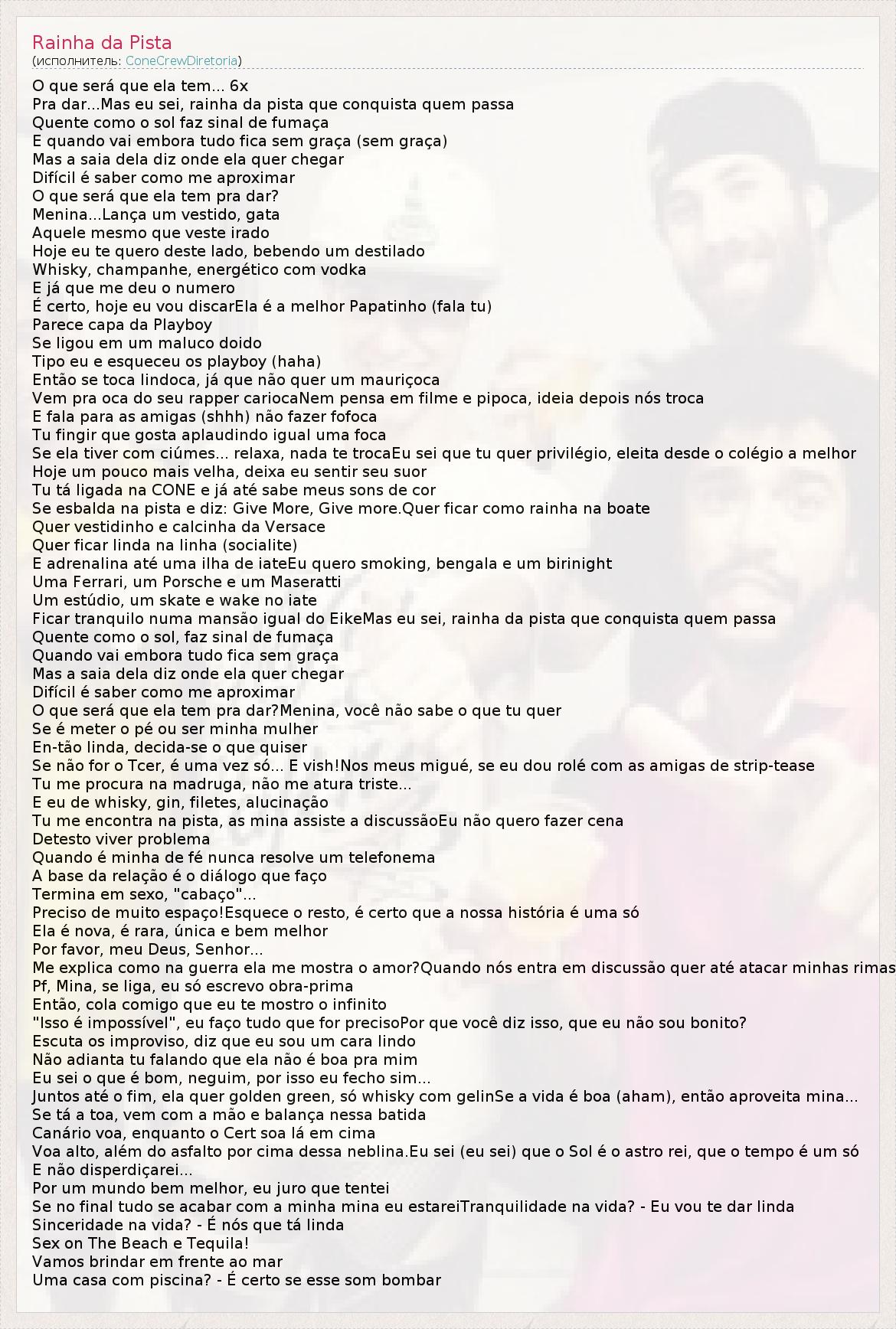 А как ты думаешь, о чем песня "Rainha da Pista" ?