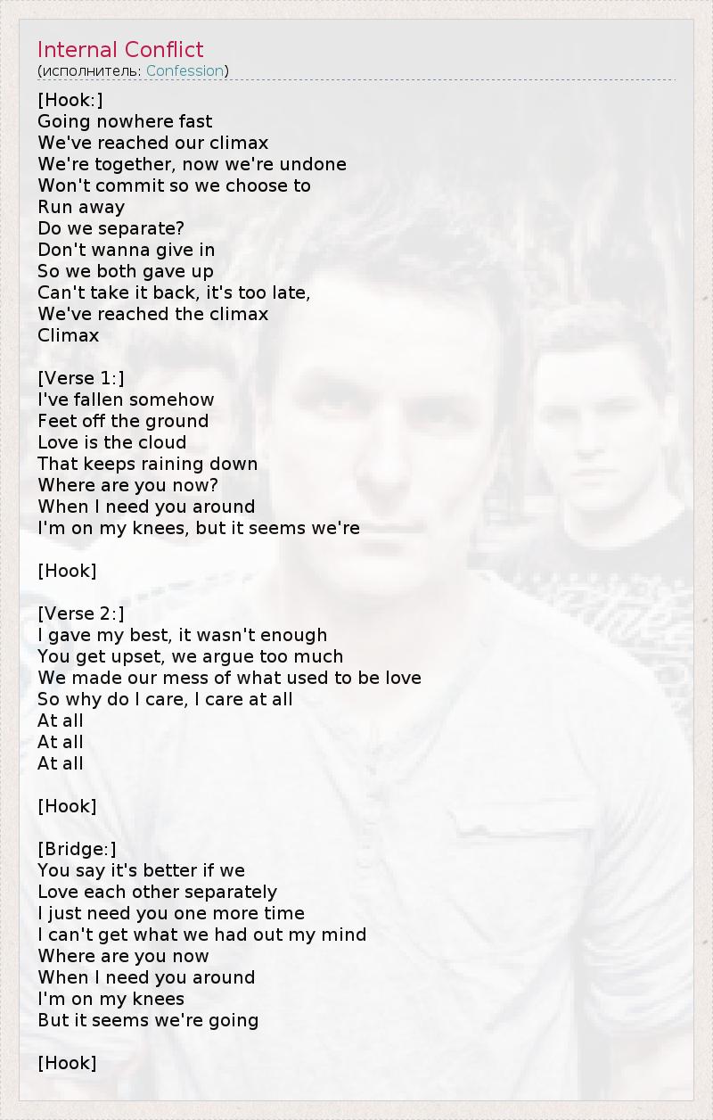 А как ты думаешь, о чем песня "Internal Conflict" ?