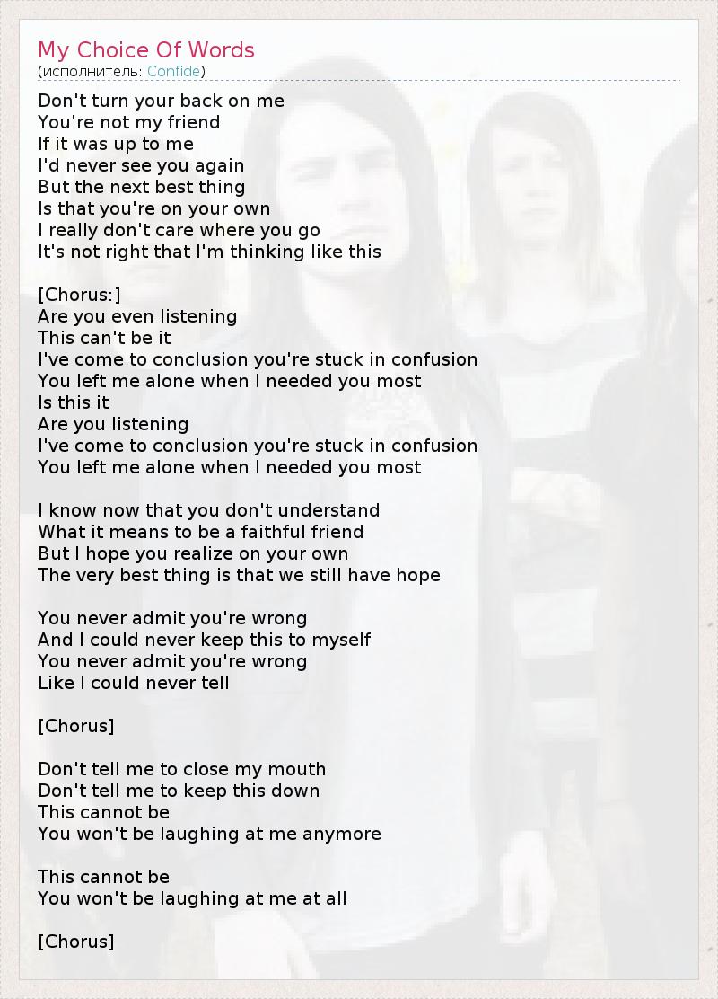 А как ты думаешь, о чем песня "My Choice Of Words" ?