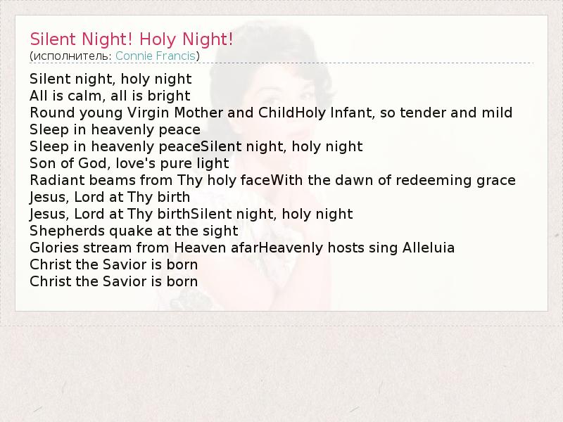 А как ты думаешь, о чем песня "Silent Night! Holy Night!" ?