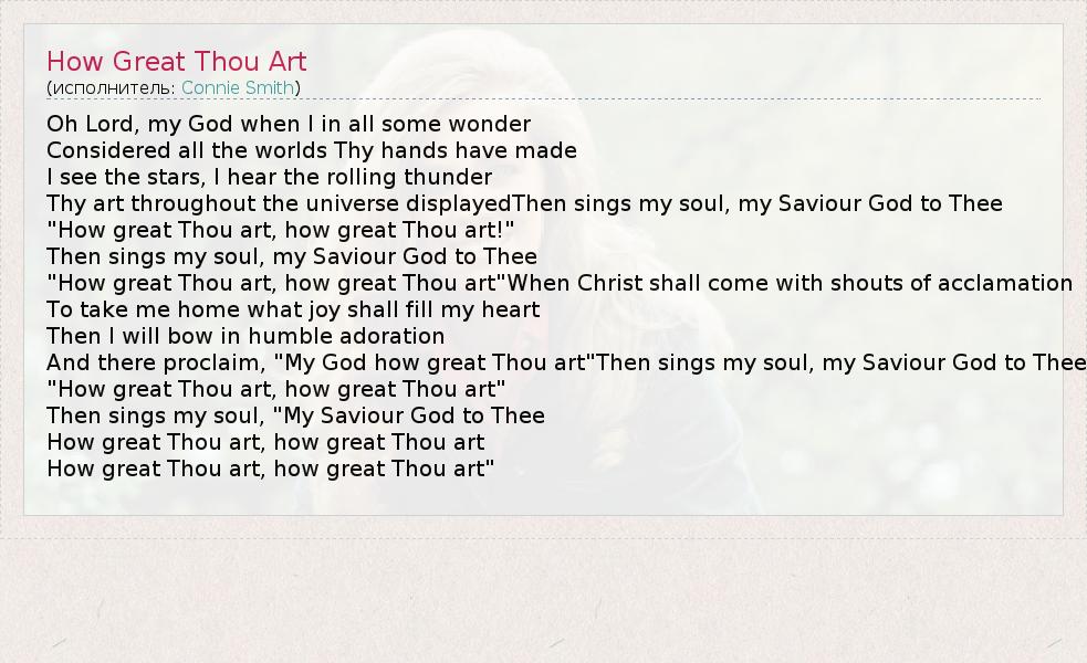 А как ты думаешь, о чем песня "How Great Thou Art" ?