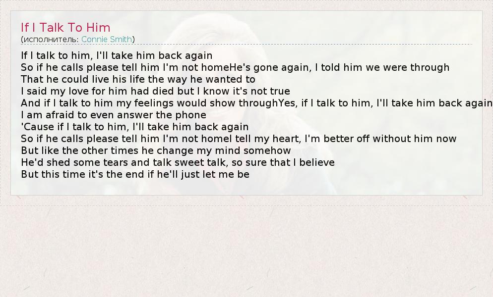 А как ты думаешь, о чем песня "If I Talk To Him" ?