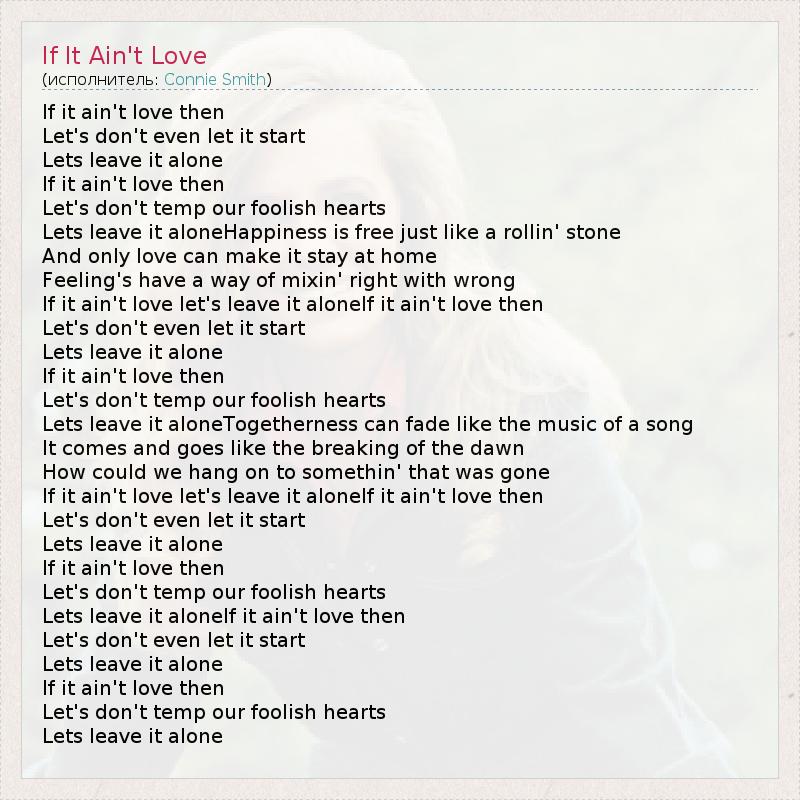 If it ain't love let's leave it aloneIf it ain't love then